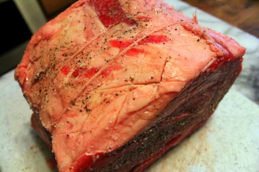 I made cross-hatch cuts in the top fat, thinking this would help the beef absorb the seasonings. But when cooked at a low temperature, I don’t think the cuts are necessary. I won’t be making them for my large Christmas roast.