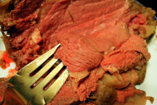 Whether you do the final high-temp “searing” or not, your rib roast will be cooked to perfection. By “perfection,” I mean the roast will be pink throughout (mine was even pink-er in the middle — just what the “rare” crowd wants), and so incredibly-tender you can eat it with a spoon.