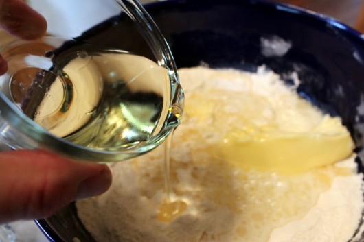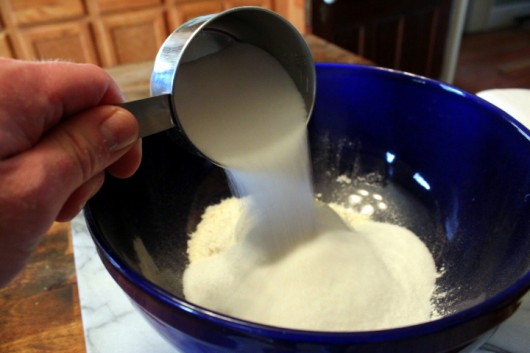 Now pour the flour into a big mixing bowl…