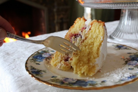 TAKE GOBS OF THICKLY-WHIPPED CREAM AND SWEET RASPBERRY JAM, spread them between rounds of sponge cake, sprinkle the works with confectioners sugar, and what do you get? Why, none other than Queen Victoria’s favorite tea-time “sandwich.” I’ve made this Victoria Cake for Afternoon Tea today. Promise you’ll join me?