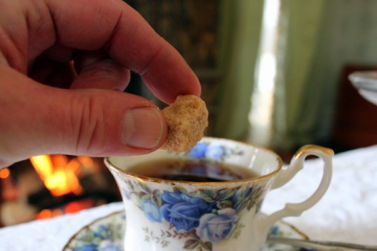 Tut Tut..using fingers to serve sugar cubes. That must be done with sugar tongs.