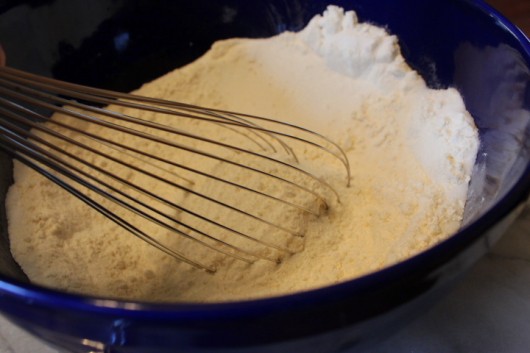 With your hips swaying to and fro, briefly blend these dry ingredients with a wire whisk.