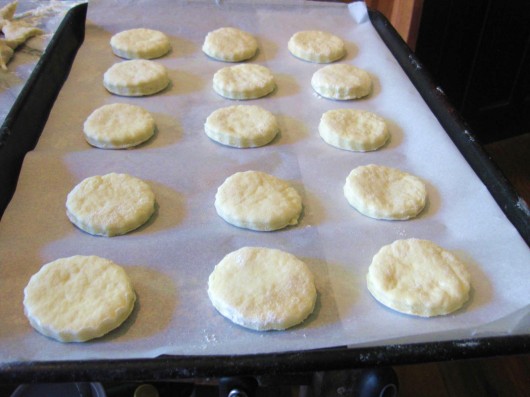 Arrange the biscuits about 1-inch apart on a baking sheet. You do not need to line the baking sheet with parchment, as I did. My baking sheet is too stained for photographs.