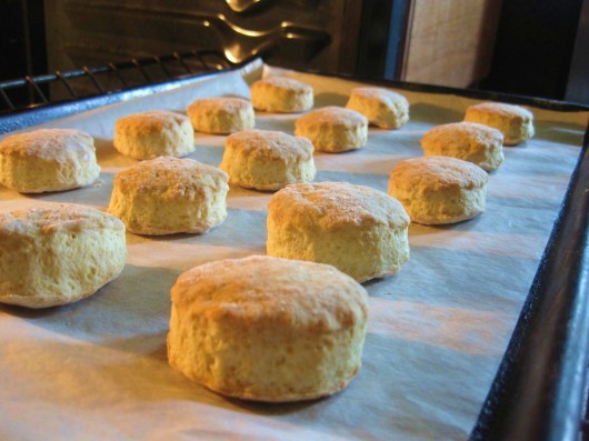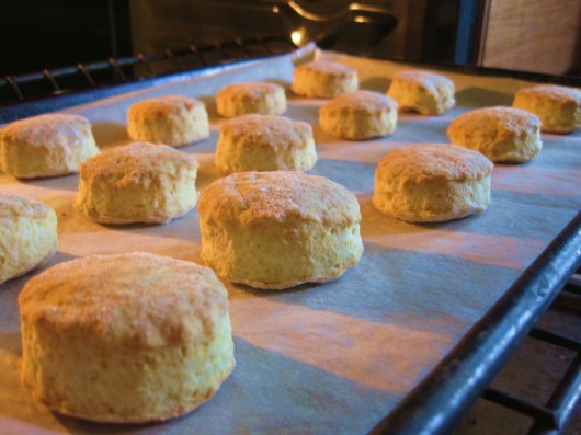 In 48 years of marriage living all over the place, when the unexpected guests drop by, I can always offer them something from the oven, By the time the coffee has brewed or the tea has steeped, or I carry the lemonade to the arbour, The biscuits/scones (with raisins or currants and a couple of tablespoons of sugar and maybe made with some cream added to the milk for extra richness) are ready to serve as well. Biscuits are one of the absolutely essential necessities of life.