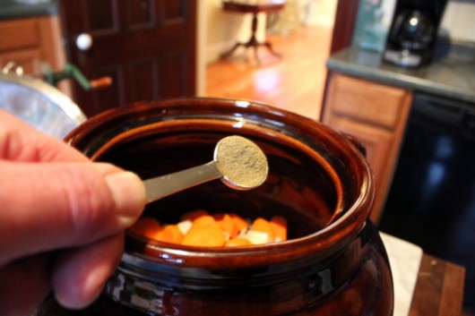 Add a teaspoon of thyme to the pot, along with several grinds of black pepper.