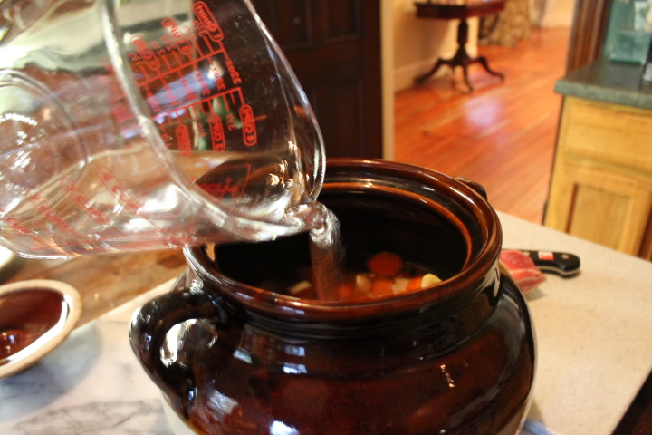 Every 30 minutes or so, remove the lid from the pot, and give the ingredients a stir. Add more water if necessary. (Be sure to use a pot holder when removing the lid!)