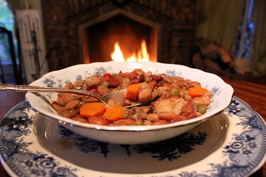 Kevin your bean stew looks wonderful! I love that you cook on the hearth! I’ll try this soon but maybe use bacon instead of salt pork—I think this will work fine–don’t you? We now have gas logs in our main fireplace but have two others that I could use for cooking. Just might have to try that hearth cooking!