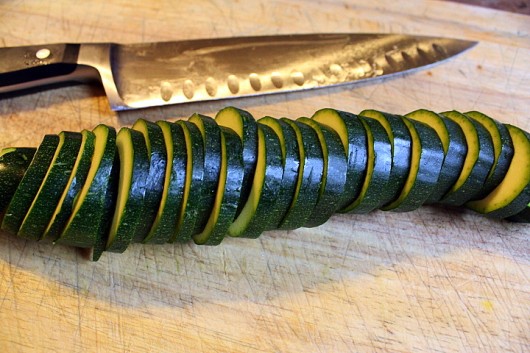 - 1 unpeeled zucchini, about 7 inches in length, sliced into 1/8-inch rounds