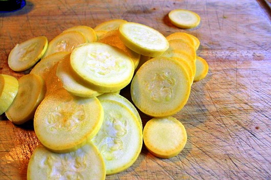 - 1 yellow squash, about 7 inches in length, sliced into 1/8-inch rounds