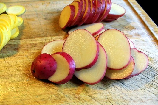 - 2 medium-size red potatoes, sliced into 1/8-inch rounds