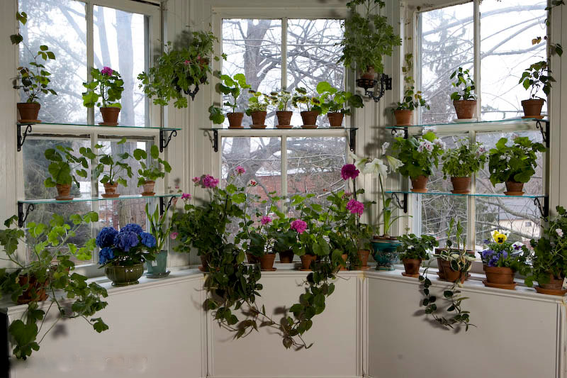 Petunias, Geraniums. If you didn’t take cuttings of these during summer, here is a salvage campaign that has worked for me. Knock the plant from its pot, sever enough roots to permit repotting into a much smaller pot, and then trim the foliage back to 2-3 inches. Place in a bright, humid, and cool (55-65 degree) location. Water once each week or less. In February, bring the plant to your sunniest window garden, and provide food and water regularly.