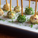 Sometimes the most basic ingredients make the best party or cocktail appetizers. Take, for instance, the Goat Cheese Bites that I made for my latest YouTube video. To make the bites, you simply blend goat cheese and a hard cheese (such as Parmesan) in a food processor. Then you form the mixture into bite-size balls, and dredge them in chopped herbs, chopped nuts, or a combination of both. Insert a pretzel stick into each little globe,  and voila — you’ll have the perfect appetizer for almost no effort at all! Here’s the printable recipe: