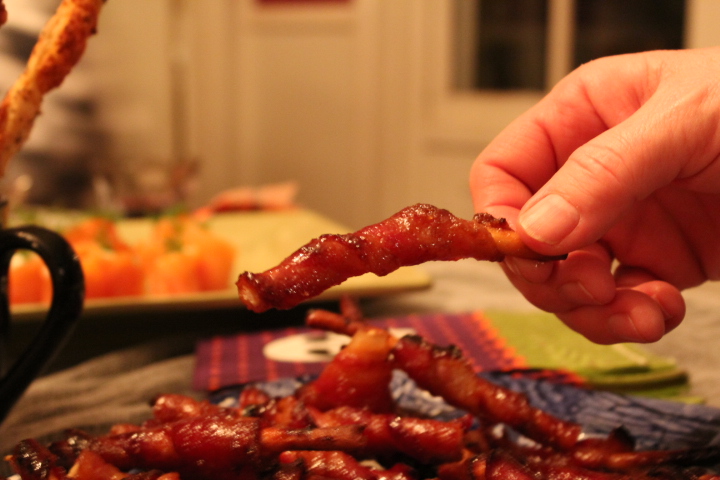Kevin, great pictures! Everyone, the party was absolutely fantastic and the food was to-die-for delicious. That is, when I stopped singing long enough to eat! (I was Liza!) Please, please, please get the recipe for those Bacon Grissini Swizle Stix! We all had a great time eating, drinking, and singing. Kevin and Will are the best hosts ever! But I was in seventh heaven having a chance to play Liza…. Will told me the biggest problem with my costume was it looked too realistic…. Glad everyone is enjoying the pictures of the food and the costumes. I can assure you that those of us who live near Kevin and attended the party had a blast! It is the highpoint of our Halloween season! Kevin, every bit of the food was delicious! Long may you and Will reign as monarchs of the Halloween season! (And many others…)