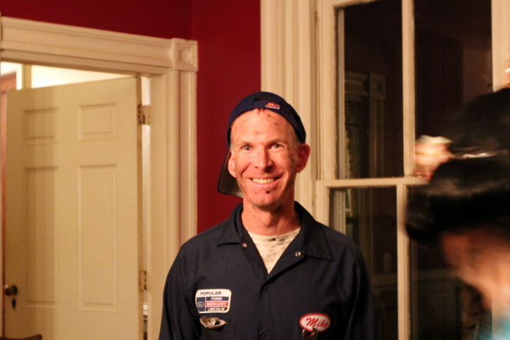 Dan Bauman, dressed as a grubby (but still-hot) auto-mechanic.