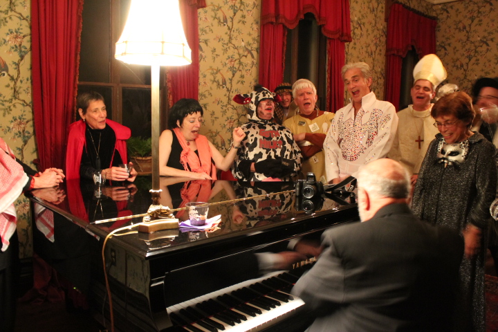 Holy Cow!!!!! I had an udderly fantastic time at this Halloween party!!!! I’m so fortunate to be a part of this community with Kevin and Will as friends. When there is such turmoil in the world it is a relief to spend an evening in costume (I loved being the cow!!!!) just having fun with friends. This year the costumes were over the top, so creative and joyous. The house decor, fabulous food and drink, and lively piano music brought out the best in this group. Thank you, thank you Kevin, Will, Ed, and Jim. Hugs, Anne the Gothic cow!
