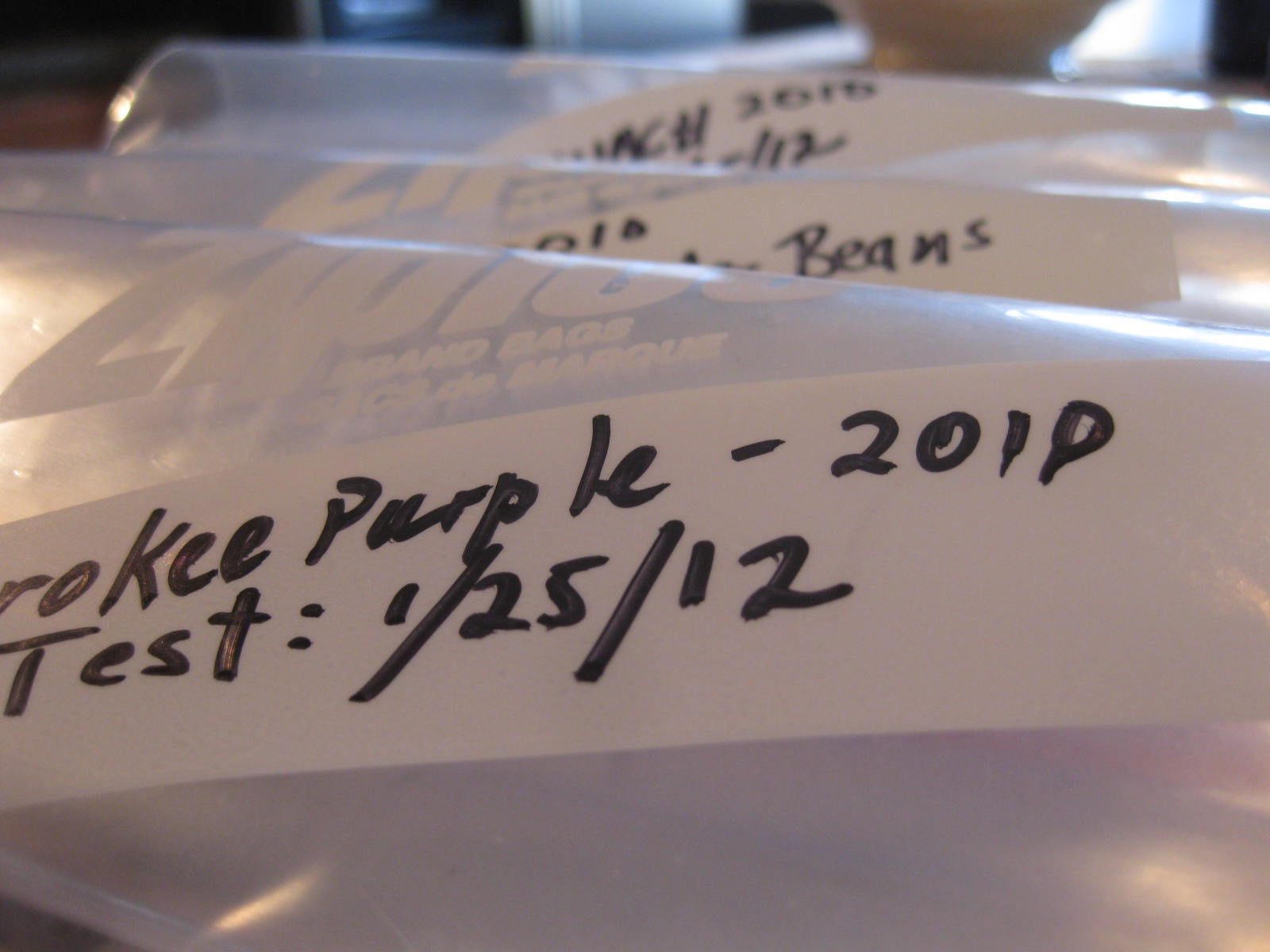 Next, place the towel in a plastic bag, and seal it to lock in moisture. Then label the bag as to seed-type, the year the seeds were packed for sale and date of your test, as above. Set the seeds some place dark and warm. Mine go in my desk drawer.