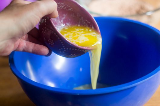 Next, tip some melted butter into a large bowl.
