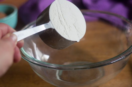 Next, throw some flour into a medium size bowl. Then add each of the following: