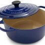 Dutch Oven. These come in various colors and sizes. My 5-quart oven is great for soups and stews. I use a 7-quart dutch oven for turning rustic bread into super-crusty rustic bread. Dutch ovens made in France by Le Creuset are pricey indeed, but with minimal care they last forever. Click here prices, sizes, and reviews at Amazon.