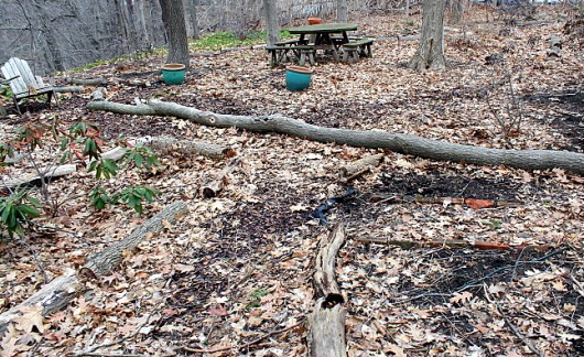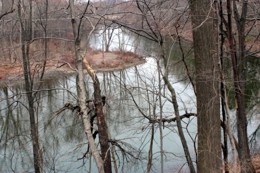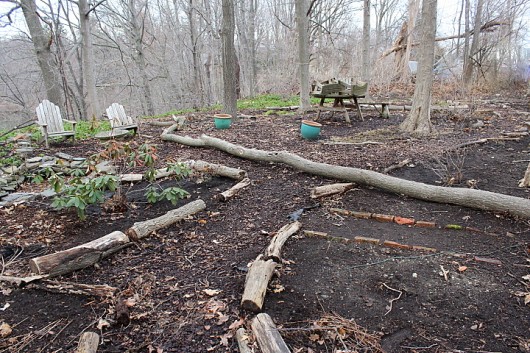 Since the trees are still bare, we have a splendid view of the stream that runs behind the Woodland. The stream leads to the Hudson River.