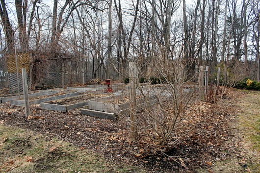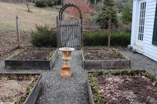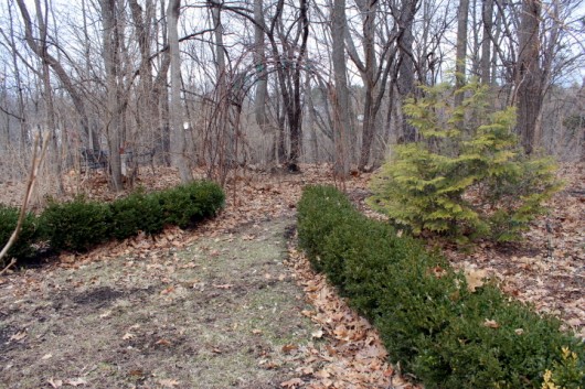I’ll have the boxwood sheared and shaped later this month. The yews (Taxus ‘Hicksii’) that surround the garden will be trimmed in a week or two, before they sprout new growth.