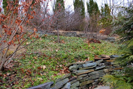 Now that the snow has melted, we can see easily see the Vinca minor that covers the Serpentine’s second terrace. Beneath the vinca are lots of spring-flowering bulbs.