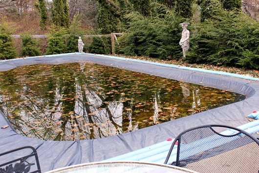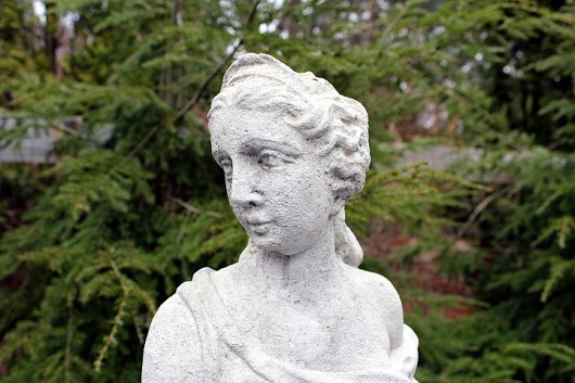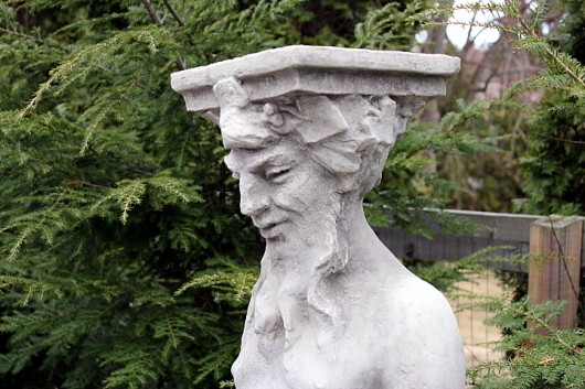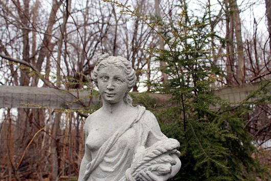 As we exit the Woodland, we encounter the pool garden. John B., our handy-man, will uncover and clean the pool in early May. Meantime, we can visit the pool statuary: