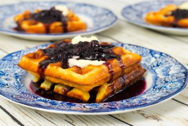 Crispy Waffles with Blueberry Sauce