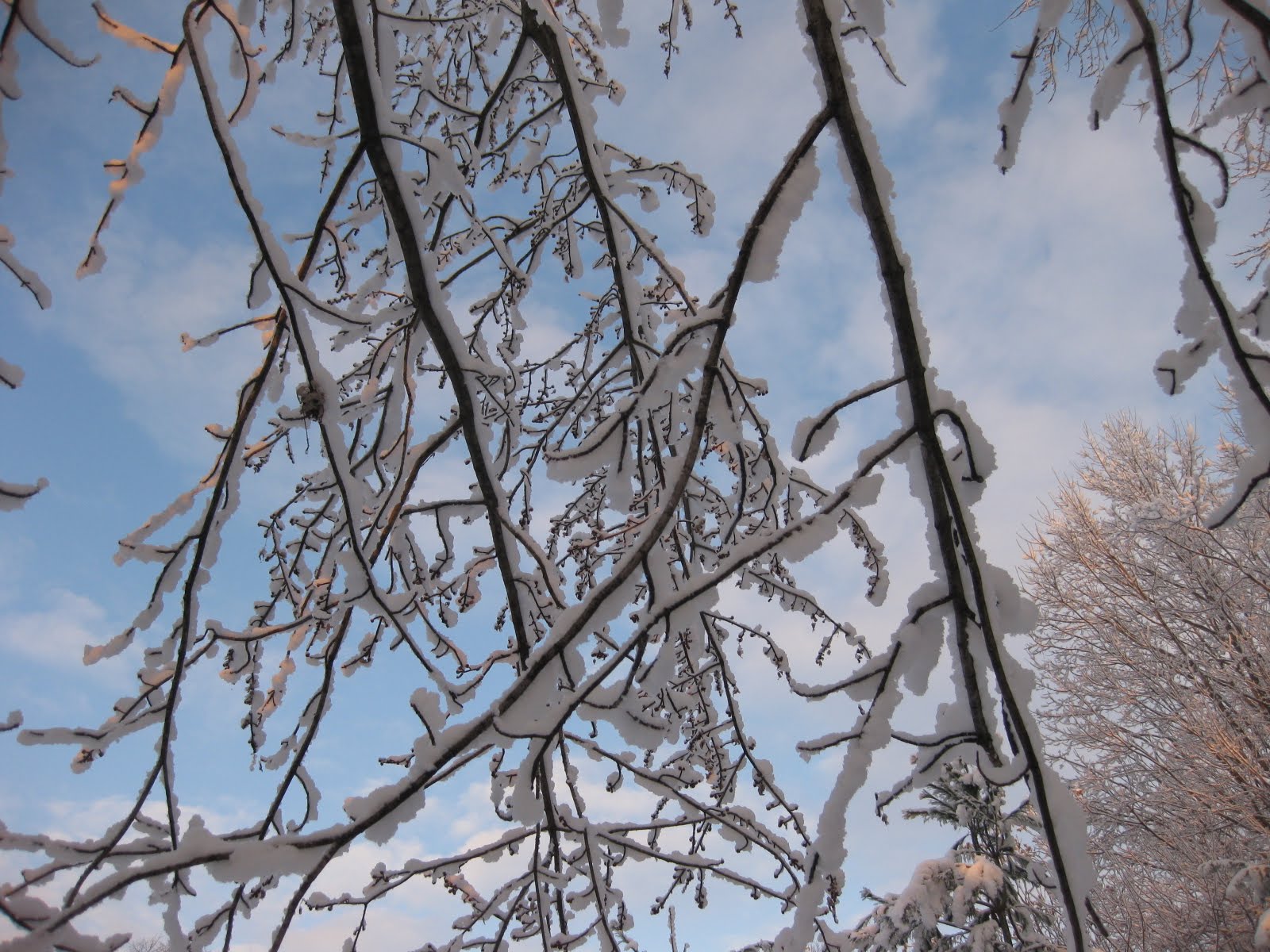 Draped in snow and silhouetted against a blue sky, the branches of a sugar maple make a lovely winter picture. (Click to enlarge)