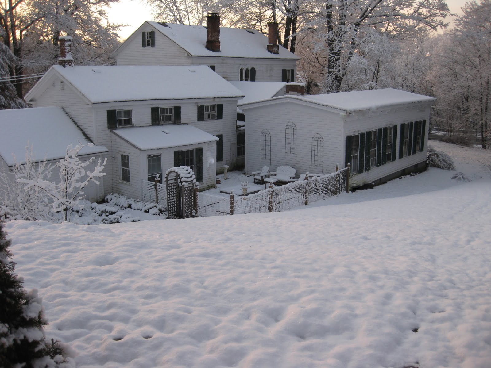 There is nothing like virgin snow to showcase how desperately your house needs a paint-job. That’s the Music Room (an 1870 addition) on the right. (Click to enlarge.)
