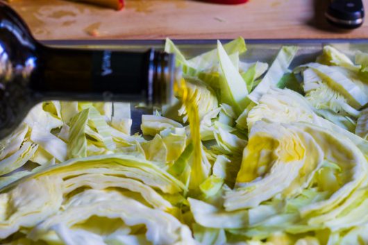 - 1 medium head of cabbage, cored and sliced into wedges or ribbons