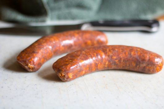 Take 2 or 3 chorizo sausages (1/2 pound total)…