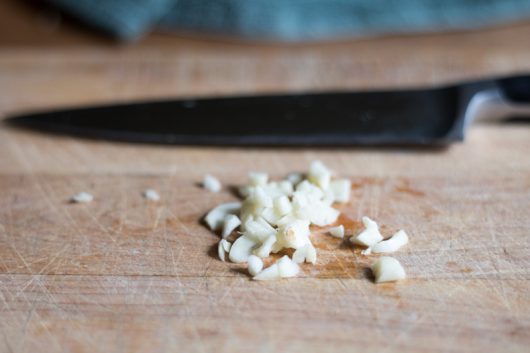Add the garlic to the potato mixture, and saute for just a minute. Don’t let the garlic burn!