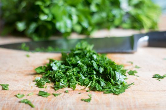 Slide the tortilla onto a platter and garnish it with the minced parsley.