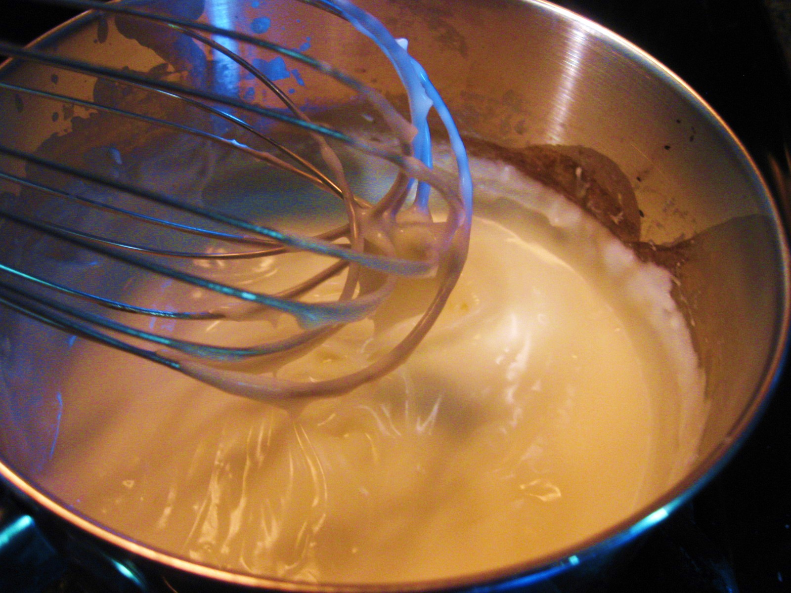 My bechamel is thickened with cornstarch, instead of the usual flour-and-butter roux. That’s because my partner is gluten-intolerant. (I want him to be able to enjoy my souffles, too.)